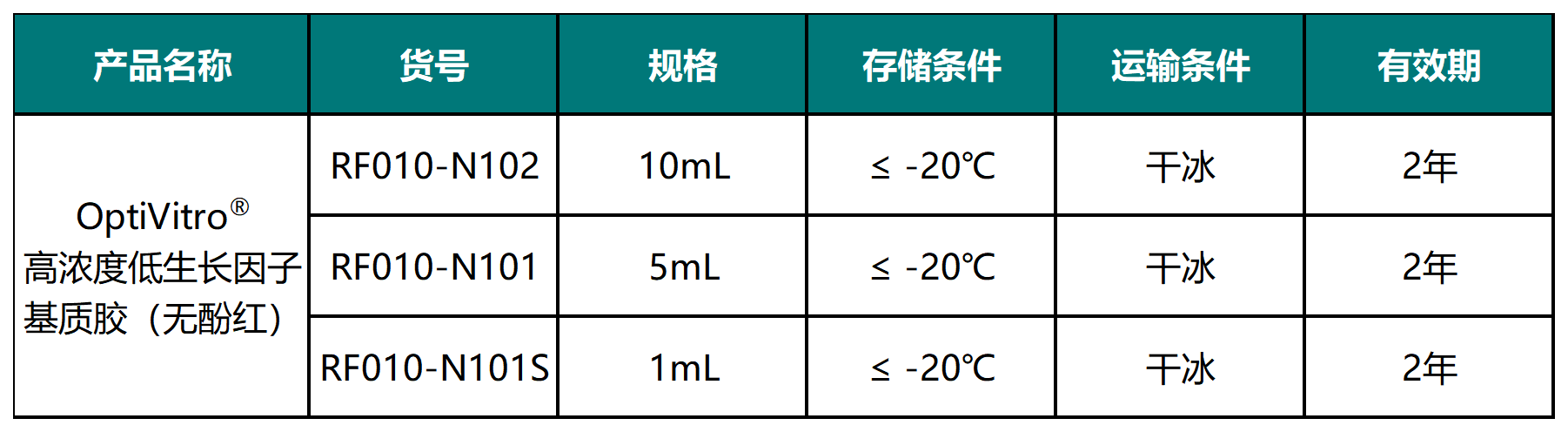 OptiVitro® 高浓度低生长因子基质胶(无酚红)是从表达多种胶原蛋白的 EHS 小鼠肉瘤中抽提出的可溶性基底膜基质,主要成分是层粘连蛋白(Laminin)、IV 型胶原蛋白(Col-IV)、硫酸乙酰肝素蛋白多糖(Heparan sulphate)和巢蛋白(Entactin),同时也含有转化生长因子β(TGF-β)、表皮生长因子(EGF)、类胰岛素生长因子(IGF-1)、成纤维细胞生长因子(bFGF)等相关生长因子。OptiVitro® 高浓度低生长因子基质胶(无酚红)浓度和粘度均高于标准浓度基质胶,具备更强的支撑性,适用于体内模型实验,可避免颜色干扰、减少生长因子诱导的背景信号。本产品溶于无酚红的高糖 DMEM 培养基中,含 50µg/ml 庆大霉素。本产品经认证不含 LDEV。